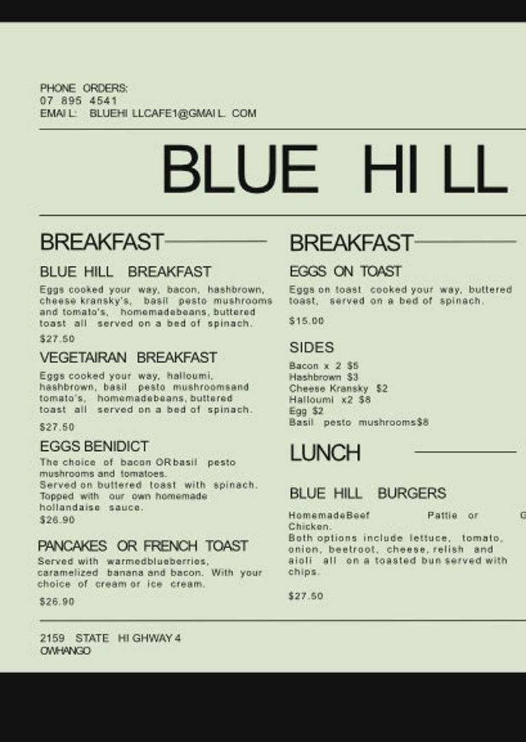 "Welcome to Blue Hill Cafe Owhango, the perfect place to stop for a break or special occasion. Situated just 15 minutes' drive south of Taumarunui Ruapehu, Blue Hill Cafe is easy to find in the rural village of Owhango on the Main Road. Blue Hill Cafe offers some of the best food and beverages in the region. Relax in modern, purpose-built surroundings and enjoy the service of a team that works hard to provide the best service possible. It's not easy to run a successful cafe, but the ladies at Blue Hill Cafe have nailed it. Whether you are passing by or are a local wanting to make a group booking for a celebration, we cater to everybody and we hope you feel the Aroha (love) when you walk through the door.