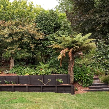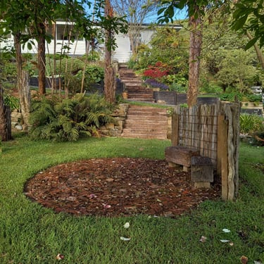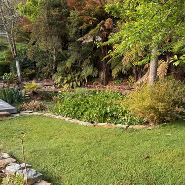 The garden consists of a mix of native and exotic plants, such as tree ferns, hydrangeas, rhododendrons, and many fruit trees which provide John & Elle with their yearly fruit for bottling jam making.