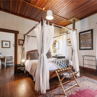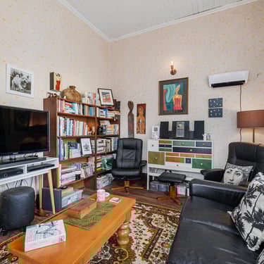 Each room is unique, with high ceilings and a warm atmosphere. June has an extensive art collection which adds to the charm of this beautiful old lady.